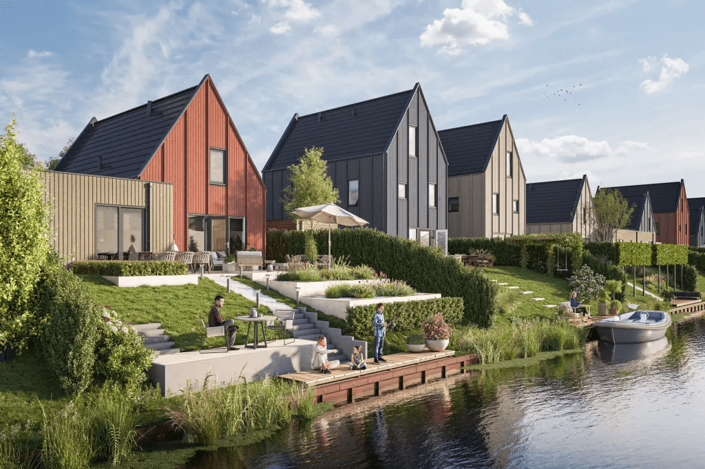 Prachtig aan het water, wordt in Dronten aan het water een mooi plan ontwikkeld. 8 levensloopgeschikte woningen, waarvan 4 woningen geschakeld zijn, en 11 traditionele (twee woonlagen en een kap) vrijstaande woningen.